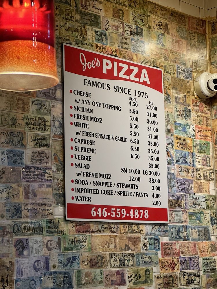 Joe's Pizza in New York City is a must-visit spot known for its legendary NYC slices. Located in Times Square, this casual and touristy pizzeria offers a wide range of delicious pies and salads. The must-try item on the menu is the classic cheese pizza with a thin crust that holds up when folded. While the white pizza with spinach and fresh garlic is also highly recommended. The simple yet addicting tomato sauce and flavorful cheese toppings make for a comforting and satisfying meal. Despite the long lines, limited seating, and slightly higher price point, Joe's Pizza delivers on taste and authenticity. Whether you're a local or a tourist, experiencing a slice of Joe's Pizza is a quintessential NYC dining experience that shouldn't be missed.